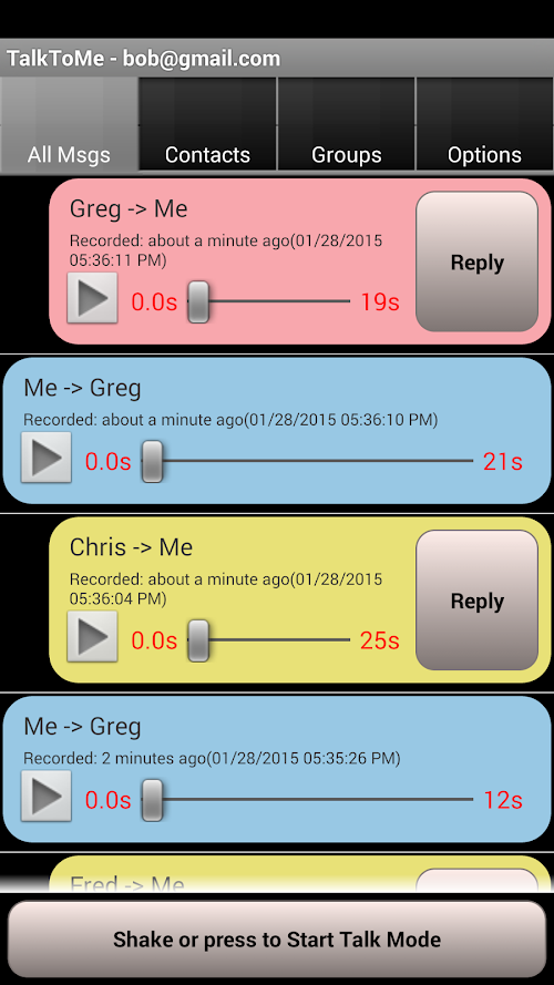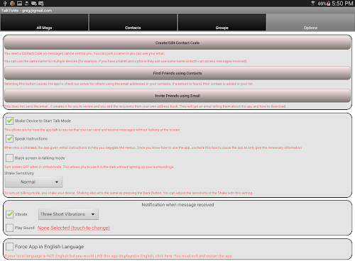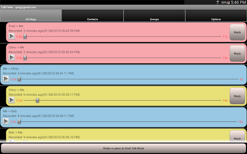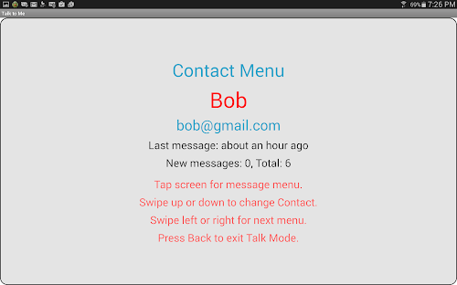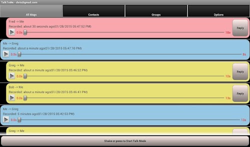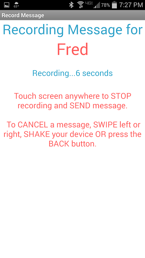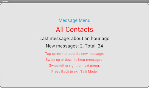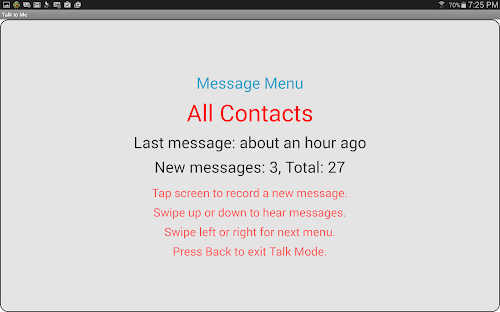 It’s really easy to move around the app. Swipe left or right to change menus. Swipe up or down to go forward and back through messages. Tap to start and stop recording. Started a recording in error? Swipe to cancel or simply ‘shake’ at any time to cancel a recording or exit Talk Mode.
