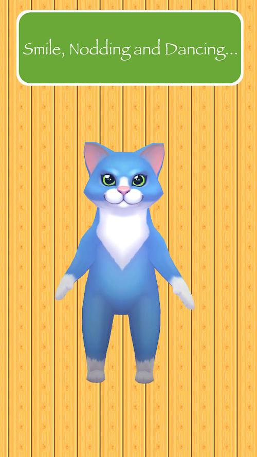 Talking cat with dancing animation and funny sound that will talk back what you said. He will speak and repeat with cute voice. He will start enjoy dancing and will also try to get your attention with his action.