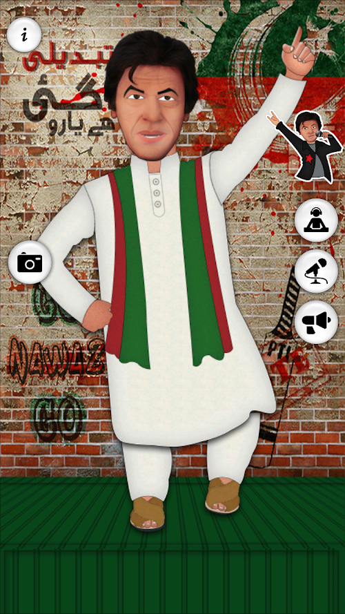• Real time appearance of Imran Khan as seen in his addresses is given in the form of a realistic cartoon, which responds to different options