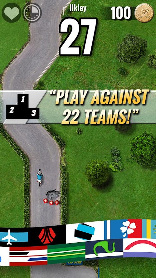 Choose to play for one of 22 competing teams from around the globe. Play at your very best to help YOUR country lift the World Cycling Cup in the tour of Yorkshire and France.