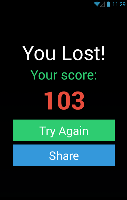 Tap The Color is a game based on the Stroop effect. Your mind gets confused while reading a color name printed in different color, simple addictive and funny!