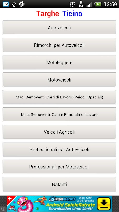 This version of Targhe Ticino Android App comes with one universal variant which will work on all the Android devices.