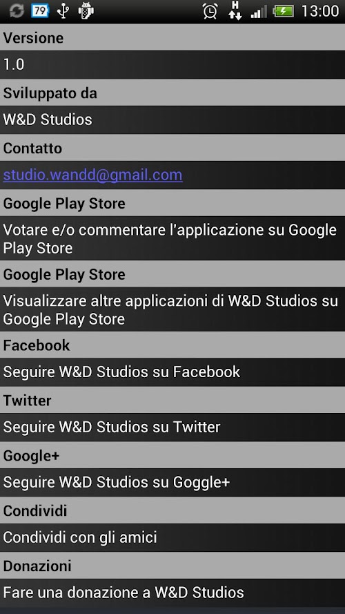 L'applicazione é gratuita ma supportata da banner e da un icona di ricerca per permettere alla stessa di rimanere gratuita. Ogni aiuto é ben accetto. L'icona di ricerca può essere rimossa in qualsiasi istante.