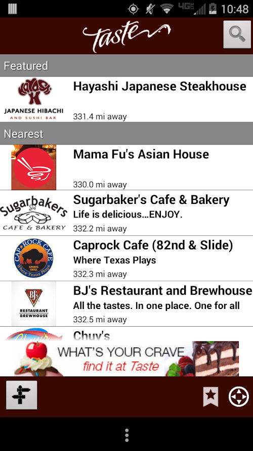 Turn-by-turn directions will guide you to your chosen location. Maximize your dining experience with coupons and local events. Download the Taste app and find your taste today!