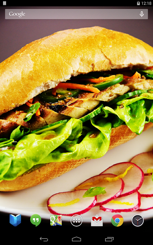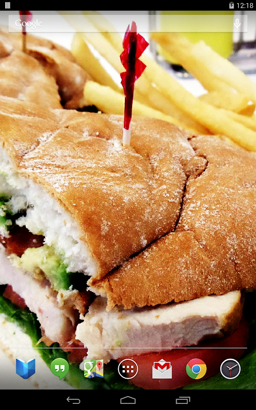 Many tasty sandwiches were eaten in the making of this app. Select text from Wikipedia, which does not endorse this product. Licensed under the creative commons (creativecommons.org/licenses/by/3.0/). Text at wikipedia.org/wiki/Live_Wallpaper and wikipedia.org/wiki/Sandwich.