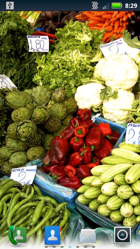 Some tasty veggies were harmed in the making of this app. Select text from Wikipedia, which does not endorse this product. Licensed under the creative commons (creativecommons.org/licenses/by/3.0/). Text at wikipedia.org/wiki/Live_Wallpaper and wikipedia.org/wiki/Vegetable.