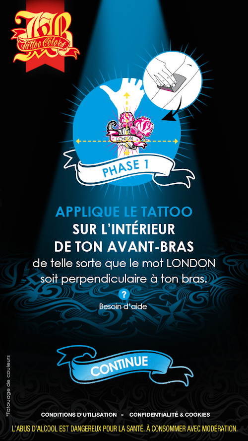 TATTOO COLORS est une application gratuite permettant de découvrir le tatouage en réalité augmentée. Tu as toujours voulu connaître l'effet d'un tatouage sur ta peau, mais difficile de franchir le pas. Nous t'offrons la possibilité de voir un vrai tatouage londonien se dessiner sur ton bras. Retrouve en magasin le tattoo qui te permettra de passer à l'action.