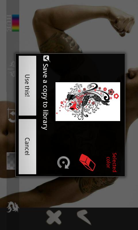 Try new tattoo designs without pain in one touch! Take instant camera shot of your skin with epic tattoo on it easily. Editing your Gallery's picture with fully customizable tattoo. Scale up/down, Rotate, Flip, Erase some part, Change color, Make it translucent and Drag the tattoo to anywhere to make it looks realistic. Create your own epic tattoo design from any picture or tattoo flashes. Export preferred design to sdcard and go to studio. Lots of Downloadable Content available. Prank you parent with new Yakuza tattoo style. This is the best tattoo app on Android that ever made!
