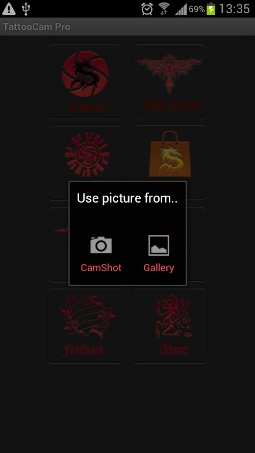 + Create your own tattoo design with any picture (Gallery picture/ tattoo flash).