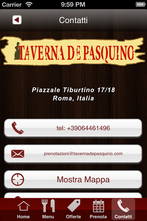 CHIUSURA LUNEDI’ SERA SALVO PRENOTAZIONI PER CERIMONIE, BANCHETTI ED EVENTILa Taverna de Pasquino is in Rome, a few steps from Termini railway station, in the popular district of San Lorenzo, is one of the most characteristic restaurants in the capital.