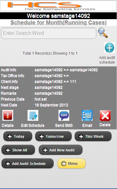 1) User will get notifications on his/her mobile related to the future hearings (we already send emails regarding future audit schedules) but now he will get notification on the mobile screen at 9.00 AM morning - it will show what all audits are scheduled for today. if no audits, schedule wont come on mobile.