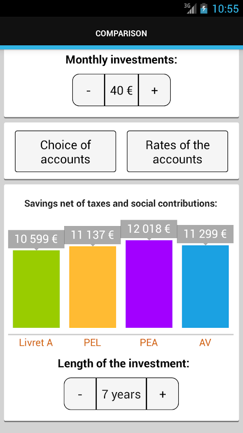 - Estimate the returns of various different French savings accounts and tax sheltered bond (Assurance Vie) and stock (Plan Epargne Actions) accounts.