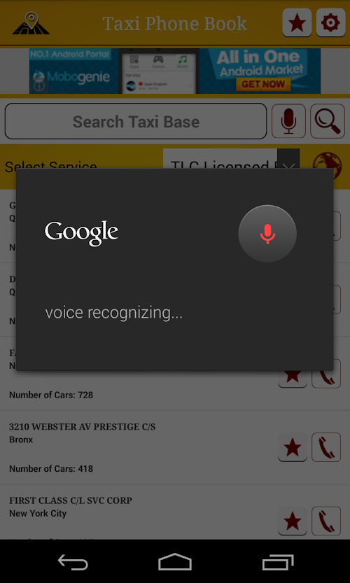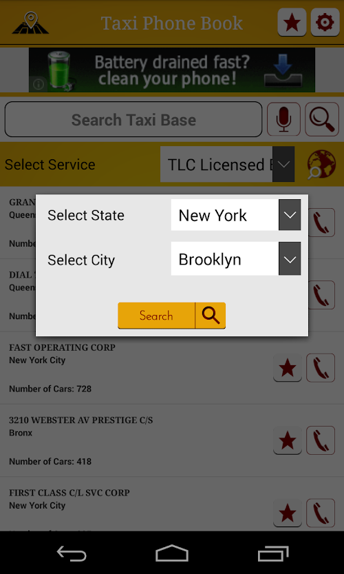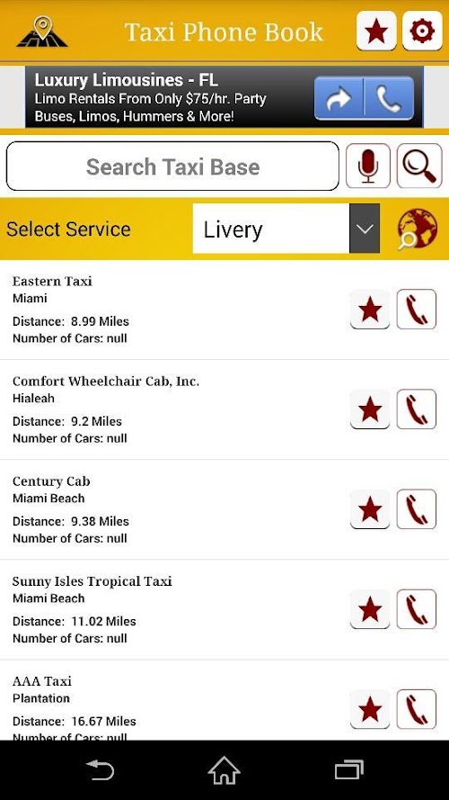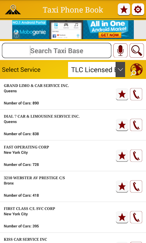 Taxi Phone Book is a user friendly mobile application that provides a faster way to contact Livery Cab, Black Car and Limousine bases in your city. Taxi Phone Book provides the telephone numbers for all the licensed bases in your city. Taxi Phone Book was developed for all the times you needed a livery cab, black car or limousine and didn't know what number to call. Even when you know the number of your favorite livery cab base and they don't have any cabs to send. You ask your friends or call information to get 1 number. Taxi Phone Book provides all the numbers, lists the closest bases to your location and displays the number of cars affiliated with them, so your choice is easy. Taxi Phone Book has a great feature that allows you to save your favorite taxi services, so that you can easily call them. Taxi Phone Book is the quickest way to phone your favorite taxi services.
