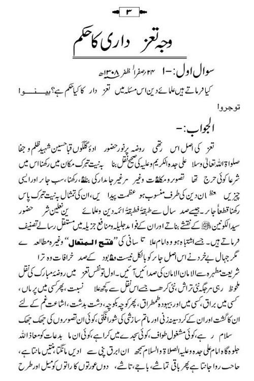 Moharram sharif me jo jahil log taziya dari me najane kis had tak pahonch jate hain to uske bare me aalahazrat ka risala urdu zaban me
