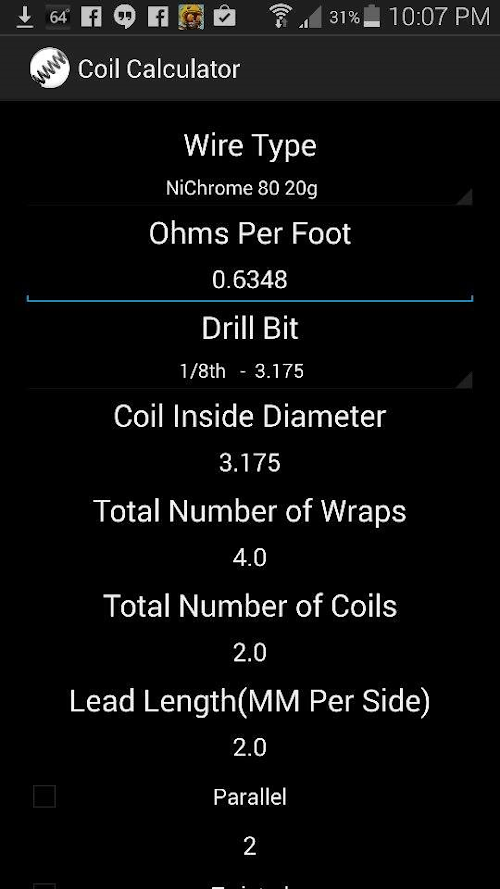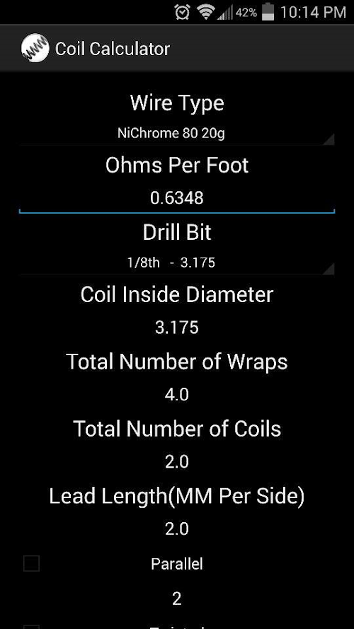 *Coil Calculator is not a substitute for an ohm reader due to it's inability to check for shorts in the builds.