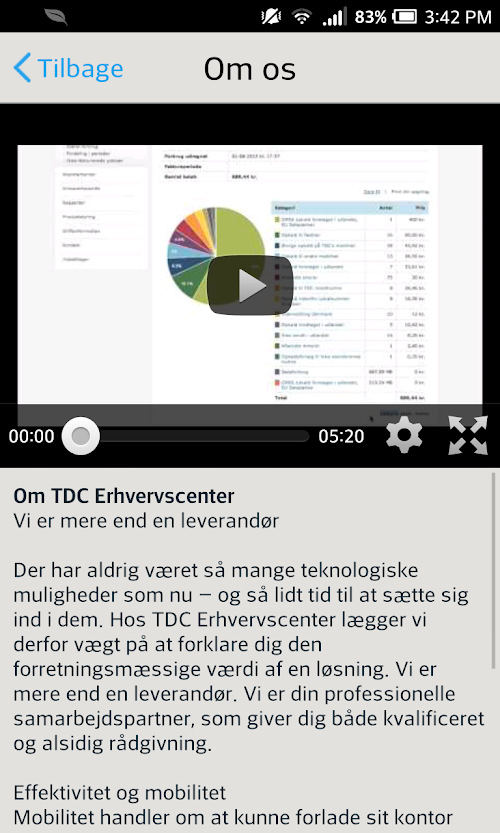Med "TDC Erhvervscenter app" giver vi dig up-to-date information om Nyheder, Produkter samt vores kontaktoplysninger direkte til din mobil.With "TDC Business Center app" we give you up-to-date information about news, products and our contact information directly to your mobile.