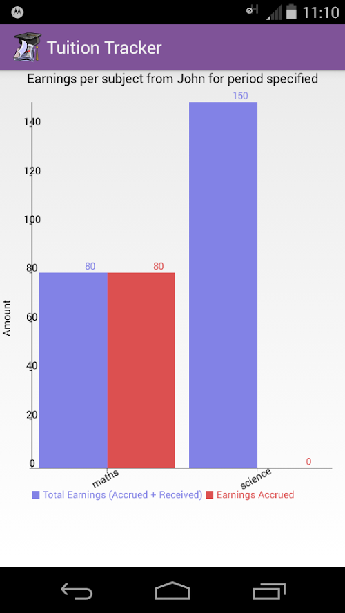•Display earnings (accrued & received) of teachers/tutors from each student subject-wise.