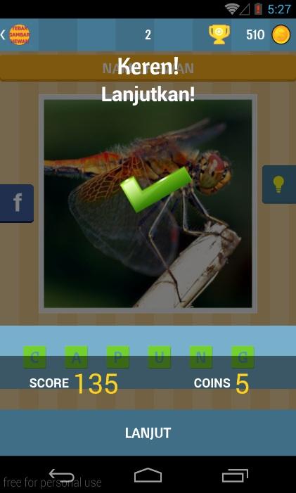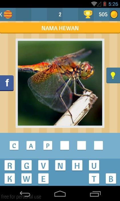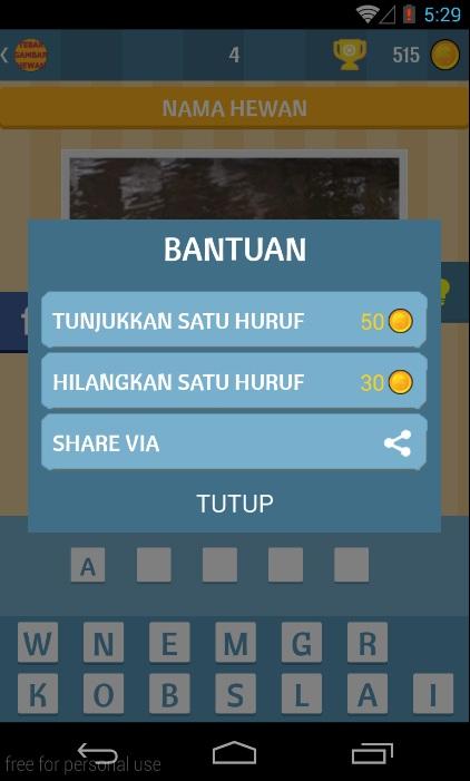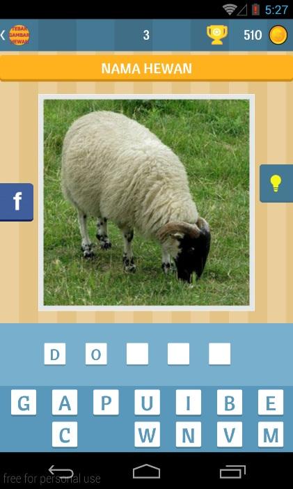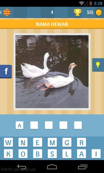 The game is fairly easy to play, you simply guess animal pictures appear and answer correctly. If the answers are correct then it will go to the next level. If you have difficulty, there is relief options can even share it with your facebook friends and ask.