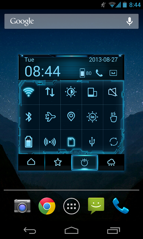 - Shortcuts to 19 system switches, including WIFI, GPS, Bluetooth, Volume, etc.