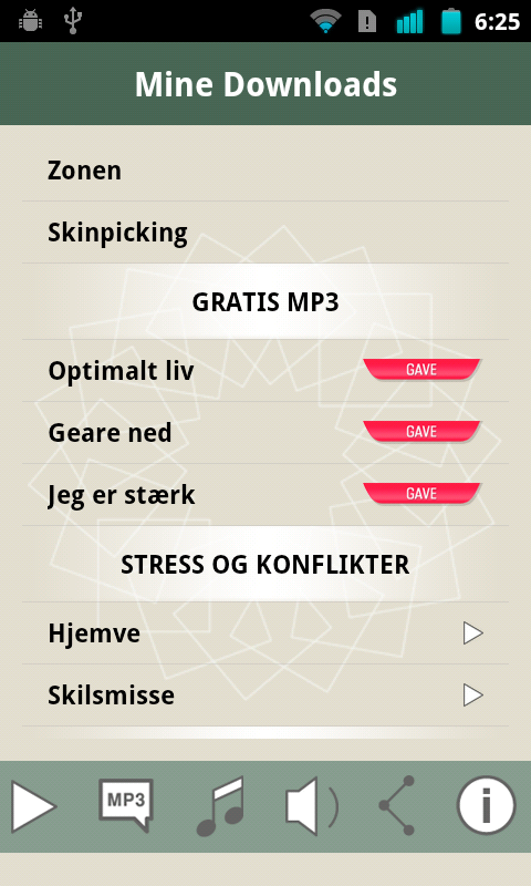 There follows a free hypnosis "zone" with your download. You can later buy other selvhypnoser directly from the application. Prices for these is 99 kr.