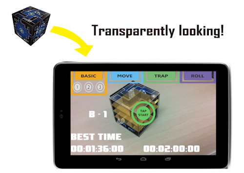 TekkyuAR is a cubic 3D maze game in which you can roll and jump a Tekkyu (Japanese: "Iron Ball") to reach a goal according to real gravity and forces.