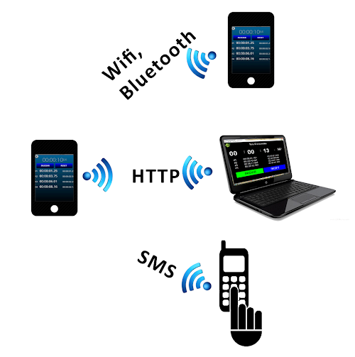 -via Wifi through another device with the same application on the same network Telecronometro Wifi