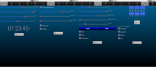 * Customizable screen: background color, gradients, transparent background, type of orientation, screen always active, full screen.