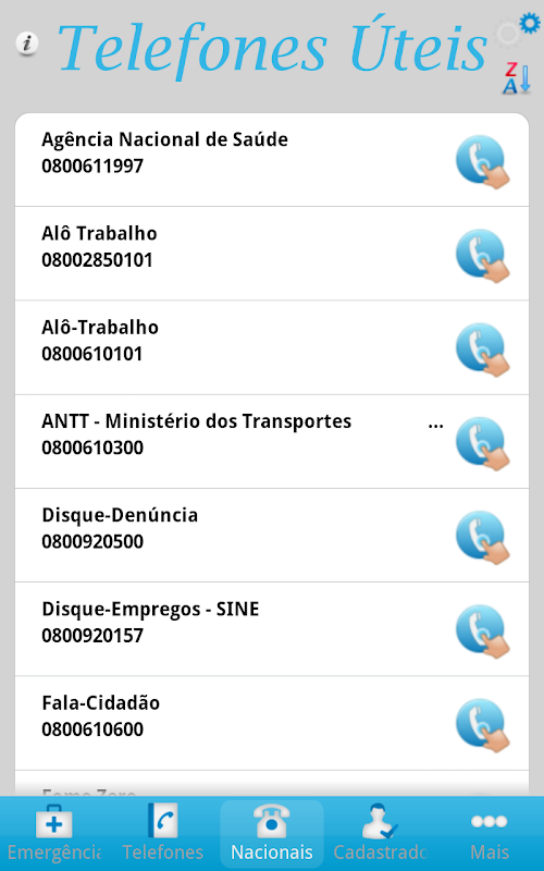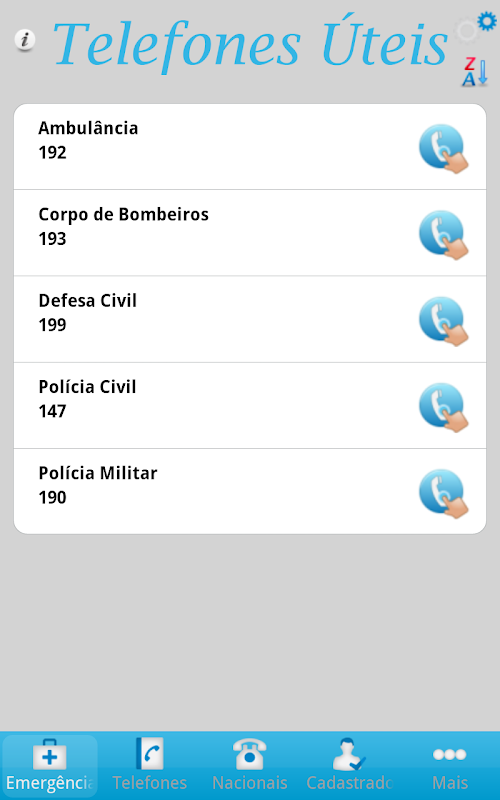 The application Useful Numbers was developed to meet users all over Brazil, so it is necessary to set the state where you want to appear in the mobile application.