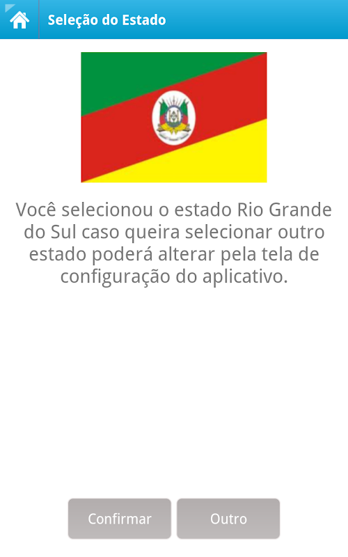 This screen shows the list of Brazilian states, and a touch on any item of the list screen is displayed to confirm the selection of the state. If you or someone in your family to travel to another state, also has the feature configuration state exchange.