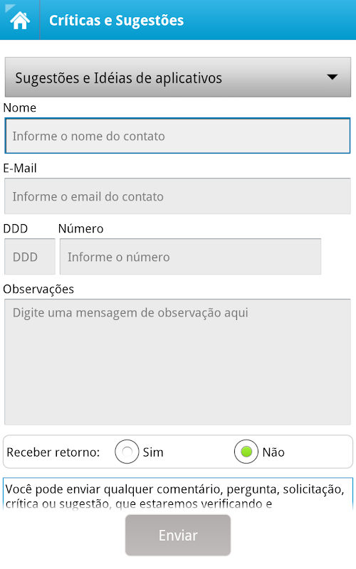 Neste e-mail coloque, sua sugestão, crítica, dúvidas, idéias de app mobile, na verdade, o você achar interessante. Vamos trocar uma idéia! Caso sua sugestão for aprovada por nossa equipe técnica, seu nome pode ser incluido na lista de apoiadores, se desejar, então nos envie juntamente no e-mail, seu logotipo, seu nome completo, etc.