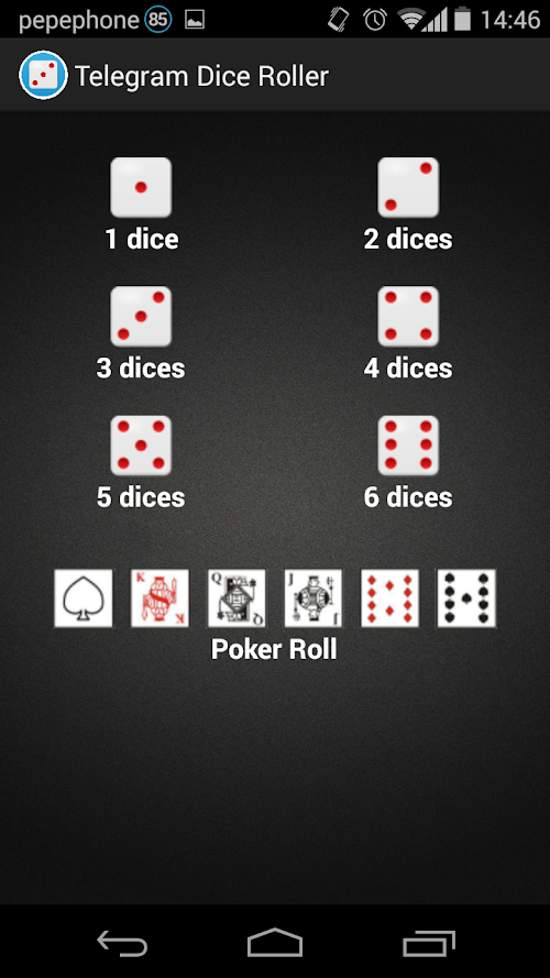 Telegram Dice Roller is a, obviously, dice roller to play some games with your friends. Dices with 6 sides, Poker and Casino Games.