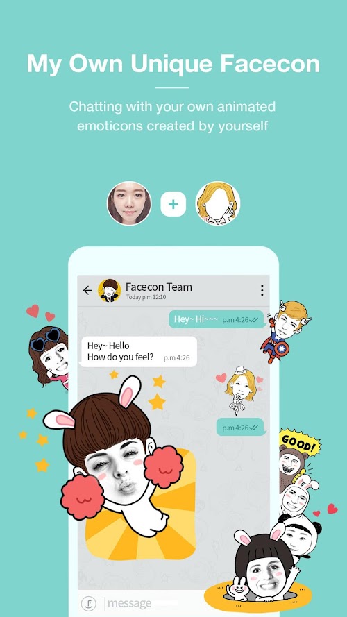 When Facecon meets Telegram, you can chat with self-created emoticons and even share to your friends!