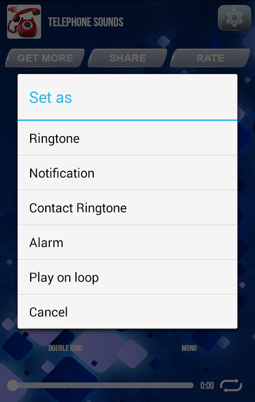 - Set as ringtone, notification sound (SMS/email) or alarm.