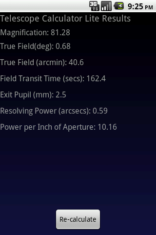 Telescope Calculator is a handy astronomy calculator for the amateur astronomer and telescope user for Android.