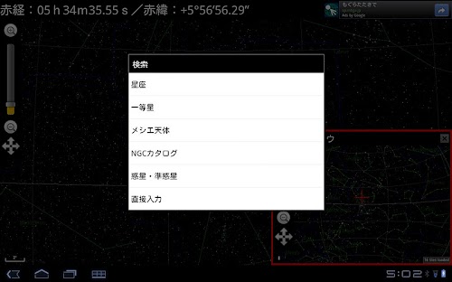 By using tablet, two screens are available to see sky map. You can use them to see zoom and overall viewing. This app has following functions: