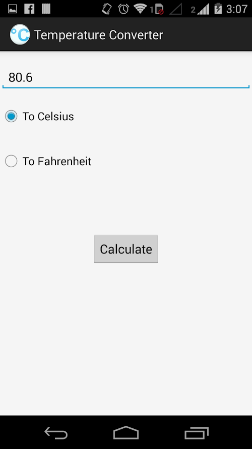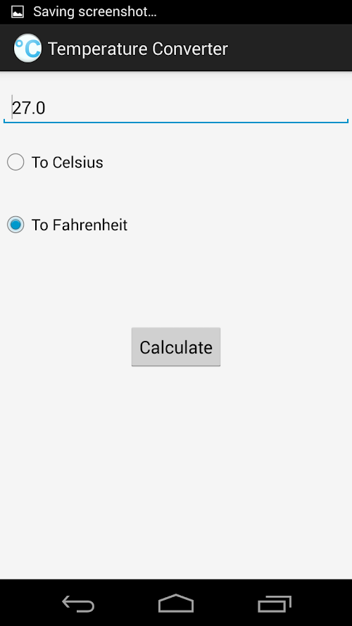 The app converts temperature from Celsius to Fahrenheit and vice verse