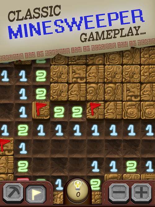 Hidden bombs are spread all over the lost Mayan temple. Now it is your task to uncover all tiles without getting trapped! To help you, bricks with numbers indicate how many mines are neighbouring it.