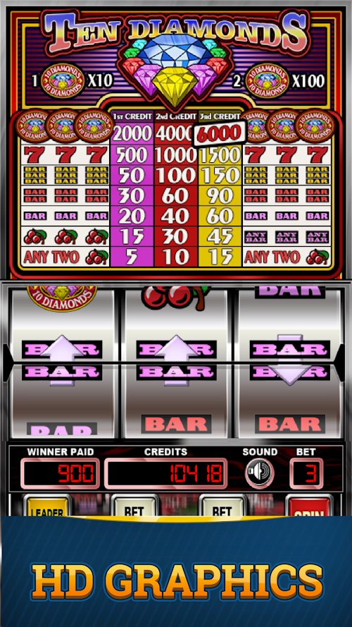 Ten Diamonds Slot Machine is easy to play and offers one of the loosest slots around. Whether you like penny slots or multi pay-line slot machines this game is for you. While 10 Diamonds is loose the leaderboards are still very competitive come rise to the top of the leaderboard. Compete against your friends and other app users for the top spot on the leaderboard daily and all time.