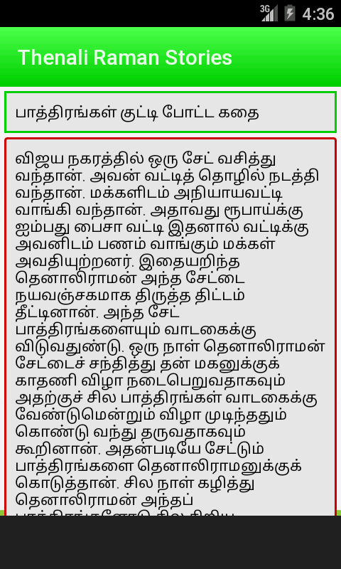 Tenali Raman Stories are the best stories for children, and also very fun. morals collection. it fully tamil language to enjoy Tenali Raman stories.