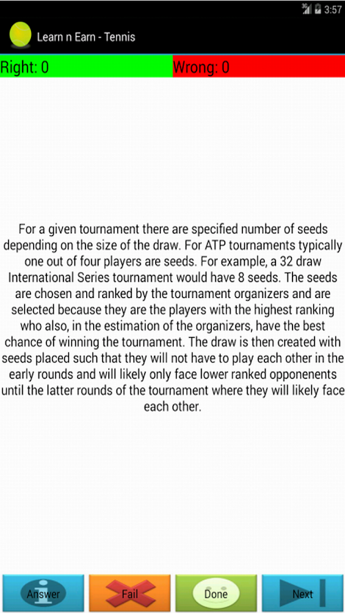 Do you feel lost in the myriad of Tennis terms ? So, you know about deuces and aces, but do you know what a Breadstick means ? How about a Chip Shot ? Or a Chop shot for that matter ? Know about a Shank ? In this app, we have tried to demystify the world of Tennis by giving clear concise definitions of each term in ordinary language. This app is meant for the general folks, though expert tennis fans might pick up a new term or two. .