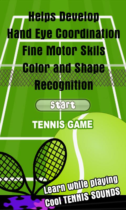 Playing the tennis games for free is really easy to learn, but completing the levels gets tougher and harder as you get further into this awesome game. This means that while Tennis Games for Kids is easy to start out with, as you move onto the next level, even teenagers and mom and dad might battle to finish the final short stages! This app includes awesome fun tennis games sounds, free for download, both on startup, and a different crowd cheering sound during the actual game!