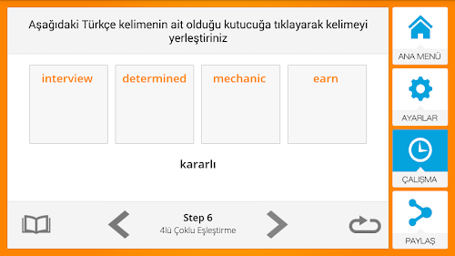 Teoge coursebook Uygulamamzız words in the textbook in this application while trying common words are studied.