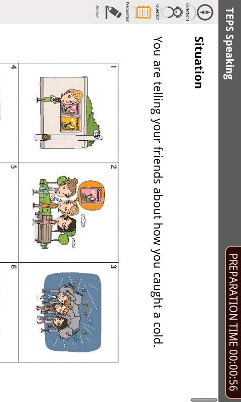 간단한 일상 대화 능력부터 도표를 보고 발표하는 분석력과 구성력에 이르기까지, 다양한 상황에서의 영어 말하기 능력을 측정하는 TEPS Speaking을 장소와 시간, 횟수에 구애받지 않고 실제 시험처럼 치르고 자가 학습할 수 있는 어플리케이션입니다.