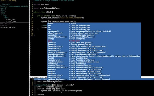 The vim editor has been setup with c / java / HTML development in mind and is extremely powerful. Also vim has been setup by default in a humane way (arrow keys work, backspace..), so that starting on this long and glorious journey won't begin with a punch in the face.