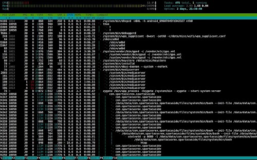 GCC 4.4.0, make 3.82, ctags, javac, java, dx, proguard, aapt, apkbuilder, signer, ssh, sshd, telnetd, bash 4.2, busybox 1.19.2, vim 7.3, nano 2.2.6, midnight commander 4.8, htop 1.0, TMUX 1.5, links 2.7, rsync 3.0.8, git 1.7.8, BitchX 1.1 and a nice terminal emulator are all available.
