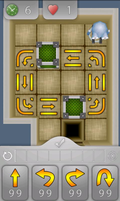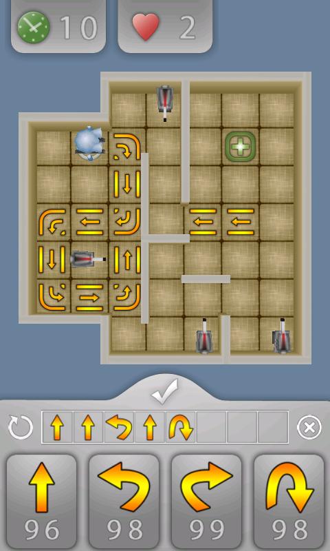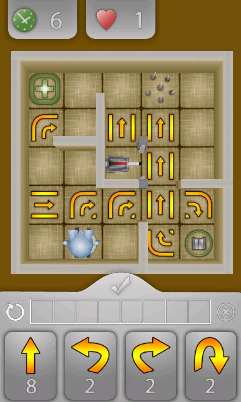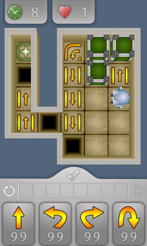 In the game you move a robot by selecting commands. Each level holds different challenges.