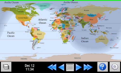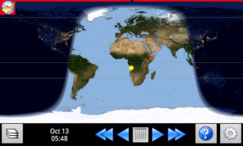 Drag and zoom the infinitely-scrollable map. Touch and drag the night shadow to see how the world looks at other times of the day. Advance the calendar to explore the view at other dates.