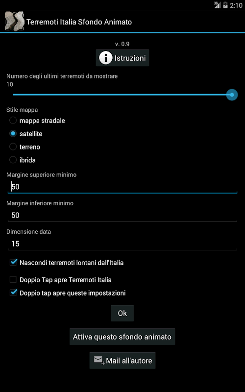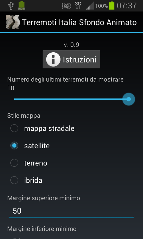 Requires the installation of the application Earthquakes Italy (https://play.google.com/store/apps/details?id=com.mdc.terremotiitalia).