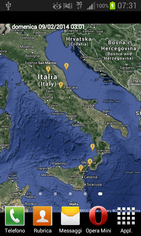 Mappa animata dell'Italia con gli ultimi 10 terremoti da usare come sfondo del telefono (Live Wallpaper).