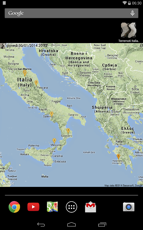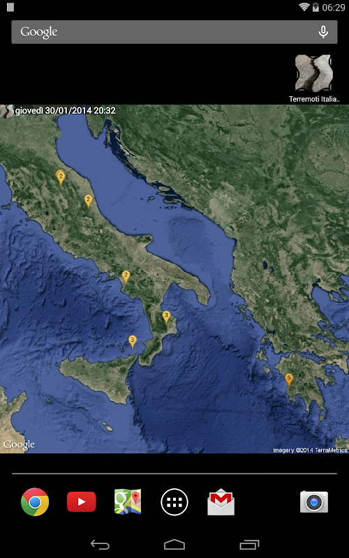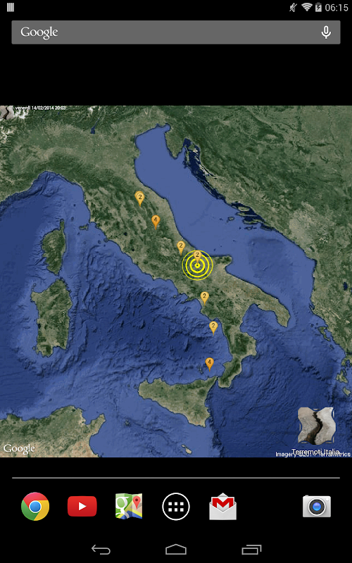 Necessita dell'istallazione dell'applicazione Terremoti Italia (https://play.google.com/store/apps/details?id=com.mdc.terremotiitalia).